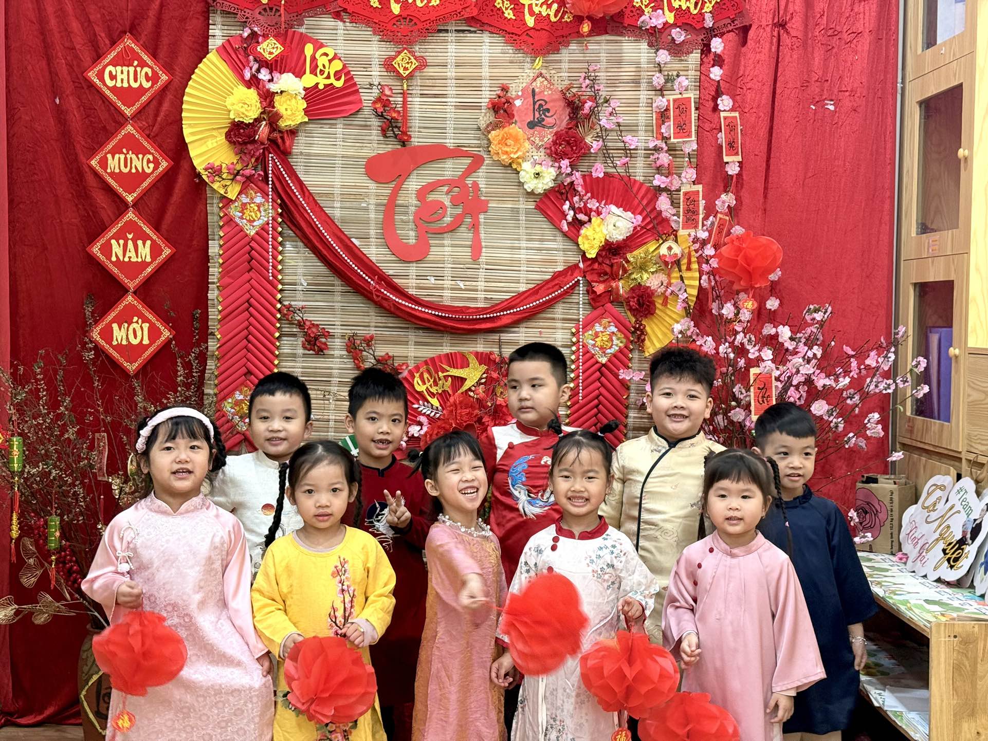 Bên cạnh tiết học tìm hiểu văn hóa, không khí Tết tại Thiên Ánh còn thêm phần rộn ràng với những bộ trang phục rực rỡ. Trong những chiếc áo dài truyền thống, các “thiên thần nhỏ” tự tin khoe dáng và lưu giữ những khoảnh khắc check-in tuyệt đẹp tại các góc trang trí mang đậm hơi thở Tết xưa.