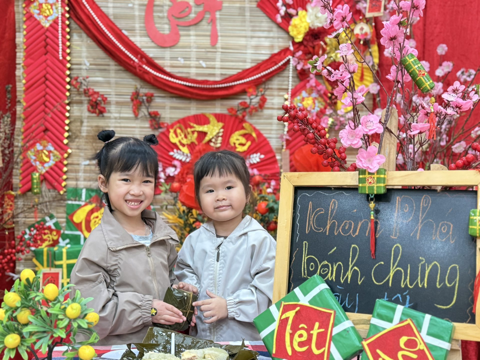Bánh Chưng không chỉ là một món ăn, mà còn là biểu tượng của lòng hiếu thảo và sự sum vầy. Tại Thiên Ánh, thay vì những bài học lý thuyết khô khan, các con được trực tiếp quan sát và khám phá “phong vị Tết” thông qua các nguyên liệu thực tế: