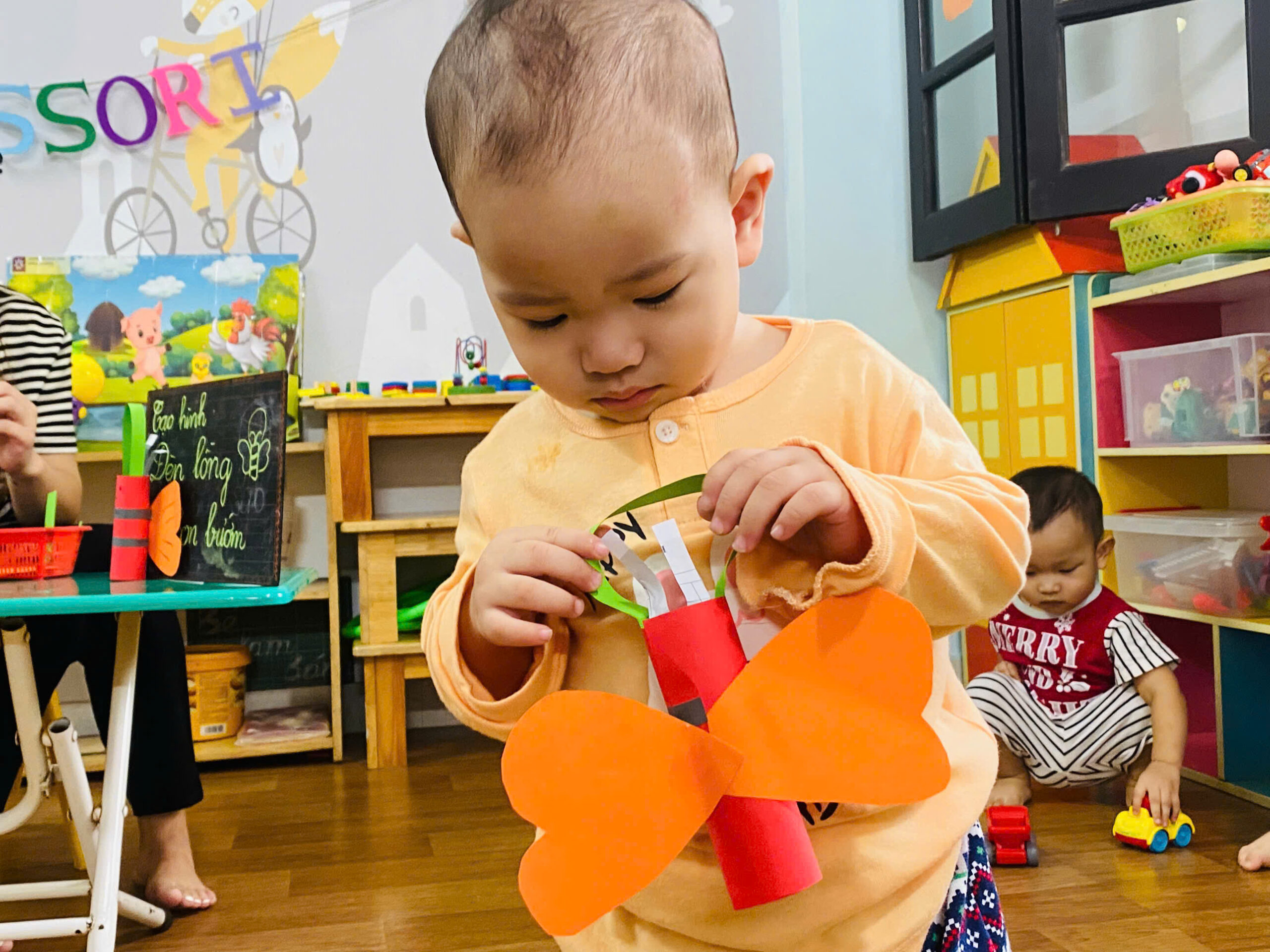 Khi thành phẩm hoàn thành, mỗi chiếc đèn lồng con bướm rực rỡ sắc màu đã mang đến cho lớp học một bầu không khí ấm áp, lung linh. Đôi mắt sáng rỡ và nụ cười hồn nhiên của các bé chính là minh chứng rõ ràng nhất cho niềm hạnh phúc trong buổi trải nghiệm.