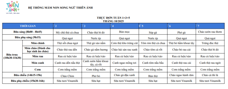 Thực đơn 2025 – Tuần 1,3,5 tháng 10 ...