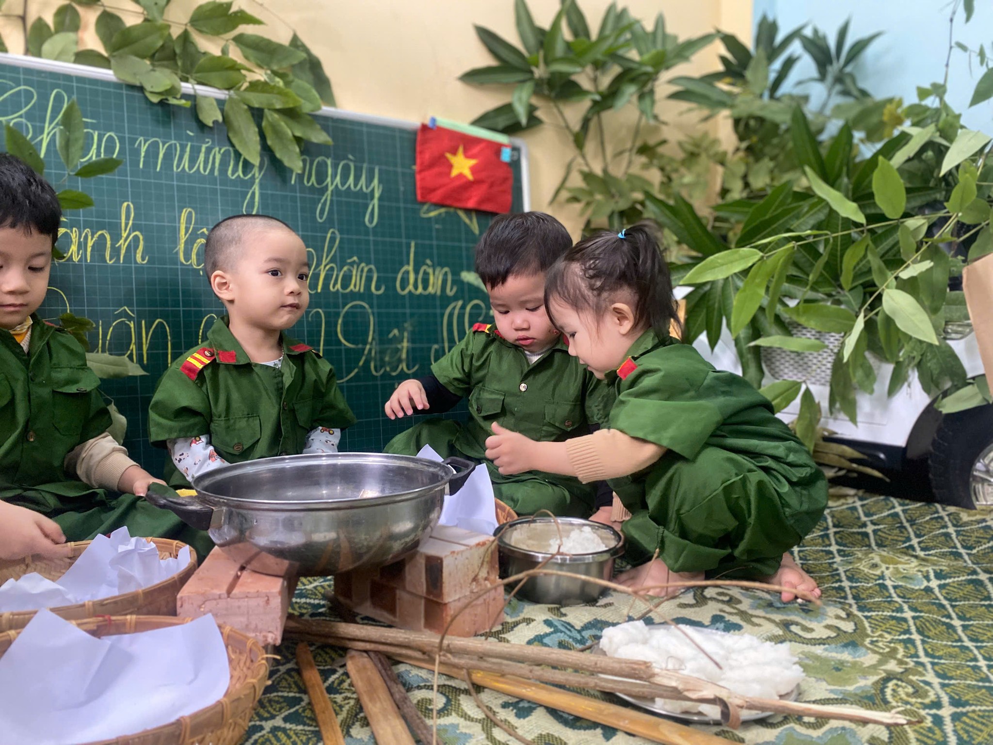 Hướng tới kỷ niệm ngày Thành lập Quân đội nhân dân Việt Nam (22/12), Trường Mầm non Song ngữ Thiên Ánh đã tổ chức chuỗi hoạt động trải nghiệm thực tế với chủ đề “Bữa cơm hành quân”. Đây không chỉ là một bữa ăn đơn thuần mà còn là bài học về lòng biết ơn và niềm tự hào dân tộc dành cho các bạn nhỏ.